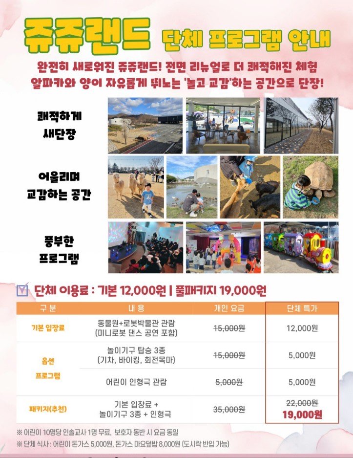 쥬쥬랜드 현장학습 페이지 정보 작성자 관리자 댓글 0건 조회 69회 작성일 25-02-26 10:31 본문 쥬쥬랜드 현장학습 목록 목록 이전글일산 로라비트&아쿠아플라넷 일산점 25.03.27 다음글에버랜드 & 캐러비안베이 현장학습 25.02.26